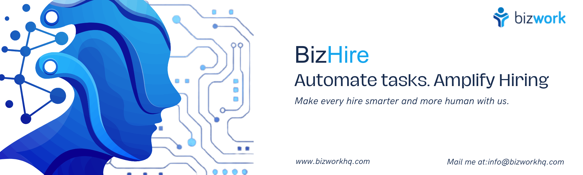 Bizwork is an AI recruitment software designed to streamline hiring and HR operations. It unifies recruitment, onboarding, and employee support into a single platform, reducing manual tasks and delays. HR teams can screen candidates faster, schedule interviews, and manage employee data efficiently, while IT support is seamlessly integrated. By automating routine steps, Bizwork helps businesses stay organized, respond quickly to internal requests, and maintain full visibility across teams. It’s built for organizations that want to accelerate hiring, improve accuracy, and deliver a smoother employee experience with AI hiring software at its core.