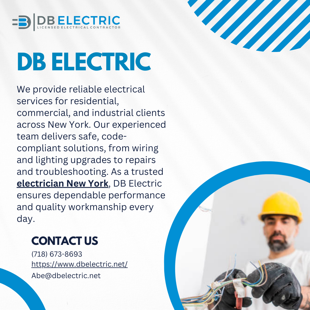 Electrical safety is essential, yet it is often taken for granted until something goes wrong. Aging systems, improper installations, or lack of maintenance can increase risks over time. Professional electricians play a key role in identifying weaknesses and recommending improvements that support safer operation. Electrical upgrades and inspections can improve efficiency, reduce energy waste, and extend system lifespan. Skilled service also ensures compliance with modern standards and best practices. When people search for a Brooklyn electrician, they are often looking for someone who understands both safety and performance. DB Electric provides professional electrical services designed to meet the needs of modern homes and businesses. With a focus on careful workmanship and reliable results, expert service helps protect property while supporting smooth daily operations. Investing in professional electrical care ensures systems remain dependable, efficient, and prepared for future demands. Learn how expert electrical solutions can make a difference at: https://www.dbelectric.net/brooklyn-electricianHow Can a Brooklyn Electrician Help Improve Safety and Efficiency at Home or Work? Electrical safety is essential, yet it is often taken for granted until something goes wrong. Aging systems, improper installations, or lack of maintenance can increase risks over time. Professional electricians play a key role in identifying weaknesses and recommending improvements that support safer operation. Electrical upgrades and inspections can improve efficiency, reduce energy waste, and extend system lifespan. Skilled service also ensures compliance with modern standards and best practices. When people search for a Brooklyn electrician, they are often looking for someone who understands both safety and performance. DB Electric provides professional electrical services designed to meet the needs of modern homes and businesses. With a focus on careful workmanship and reliable results, expert service helps protect property while supporting smooth daily operations. Investing in professional electrical care ensures systems remain dependable, efficient, and prepared for future demands. Learn how expert electrical solutions can make a difference at: https://www.dbelectric.net/brooklyn-electrician0 Comments 0 Shares 447 Views 0 Reviews
