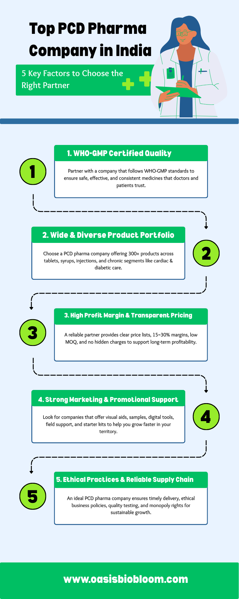 Why Choose Oasis Bio Bloom – A Trusted PCD Pharma Company in India Top PCD Pharma Company in India: How to Choose the Best Partner Choosing the right PCD Pharma Company in India is the foundation of a successful pharma franchise business. With over 1000 companies in the market, selecting a reliable and ethical partner becomes crucial. This infographic highlights the key factors to evaluate before making a decision. From certifications to profit margins, each point ensures long-term growth and stability. https://oasisbiobloom.com/how-to-choose-best-pcd-pharma-company-in-india/