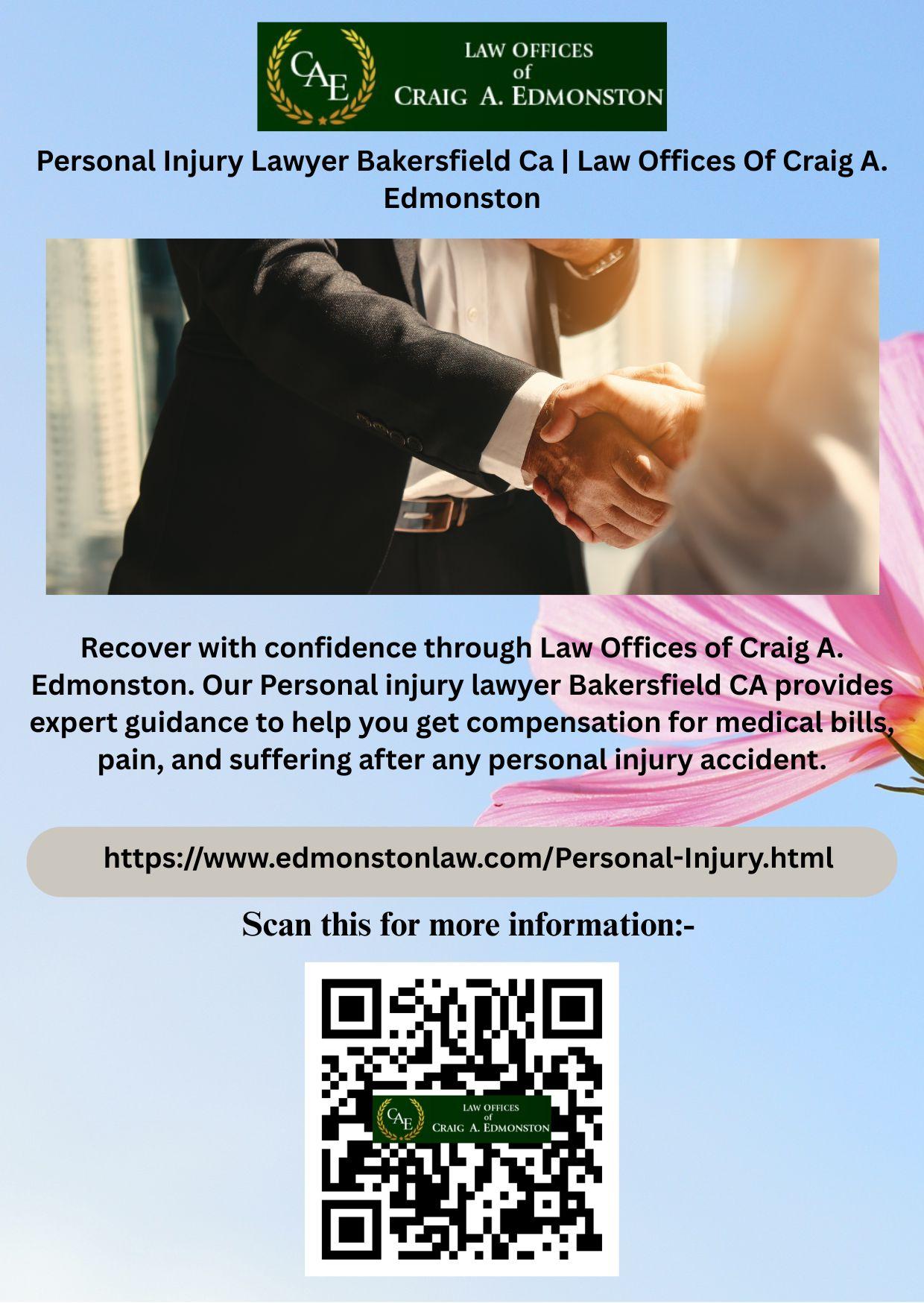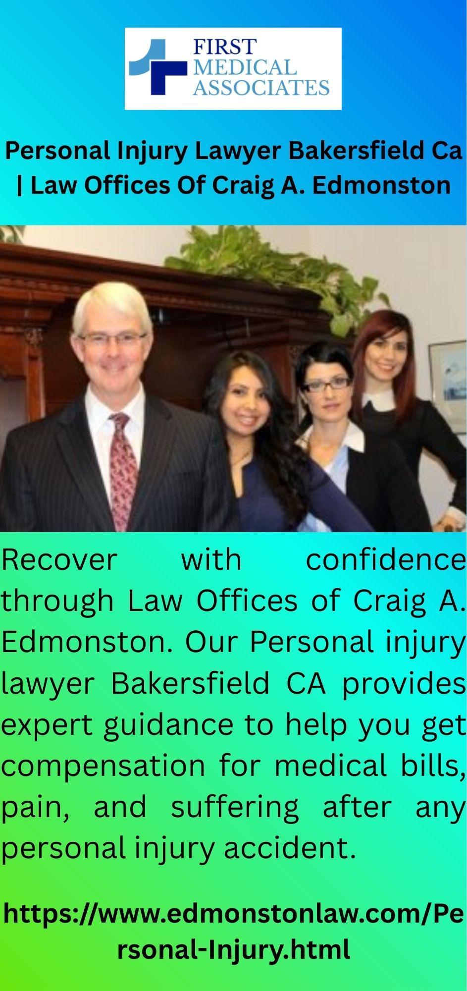 Recover with confidence through Law Offices of Craig A. Edmonston. Our Personal injury lawyer Bakersfield CA provides expert guidance to help you get compensation for medical bills, pain, and suffering after any personal injury accident.