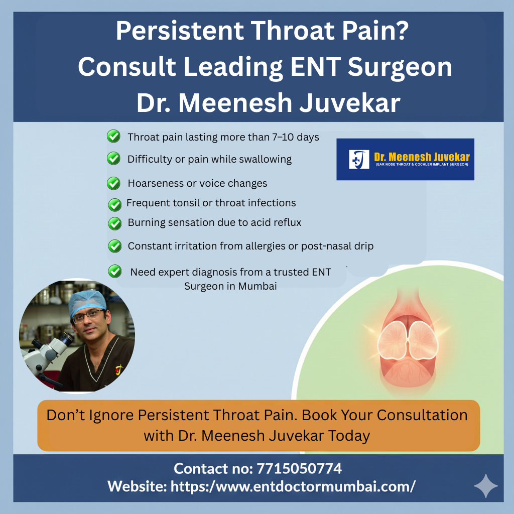 Struggling with Persistent Throat Pain? Consult Dr. Meenesh Juvekar – Leading ENT Surgeon in Mumbai