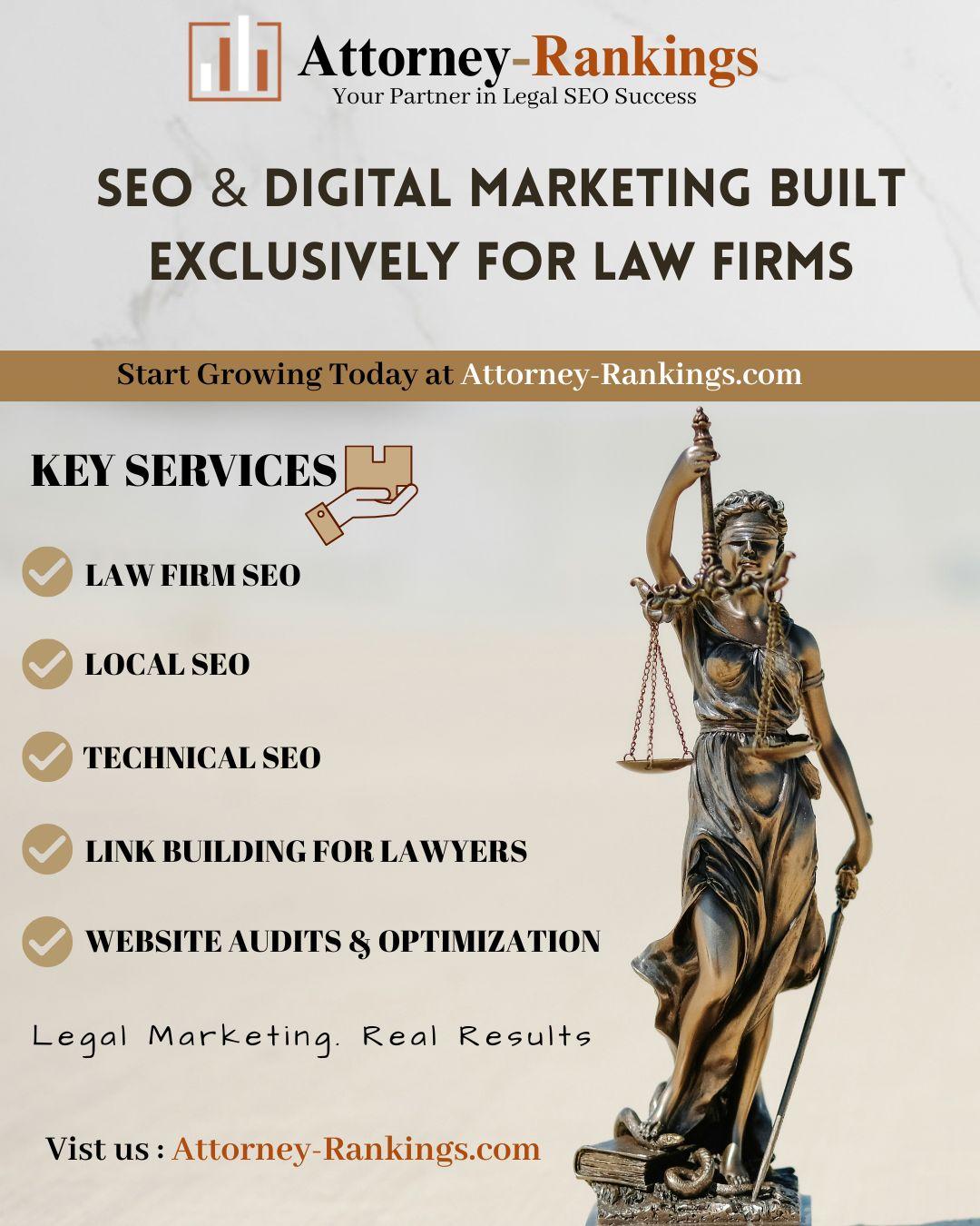 Learn more at https://attorney-rankings.com⚖️ Running a law firm in today’s digital world isn’t easy. 👩💼 Competition is tougher than ever, and clients are searching online first. 📉 Without strong SEO, even the best law firms risk being invisible. That’s where Attorney-Rankings.com comes in. ✅ We specialize in SEO & digital marketing exclusively for law firms. ✅ From Local SEO to Technical SEO, we handle it all. ✅ Our team builds high-quality backlinks for lawyers to boost visibility. ✅ We also provide website audits & optimization to ensure long-term growth. 🚀 Partner with us to attract more clients and dominate search results. 👉 Learn more at https://attorney-rankings.com0 التعليقات 0 المشاركات 318 مشاهدة 0 معاينةالرجاء تسجيل الدخول , للأعجاب والمشاركة والتعليق على هذا!