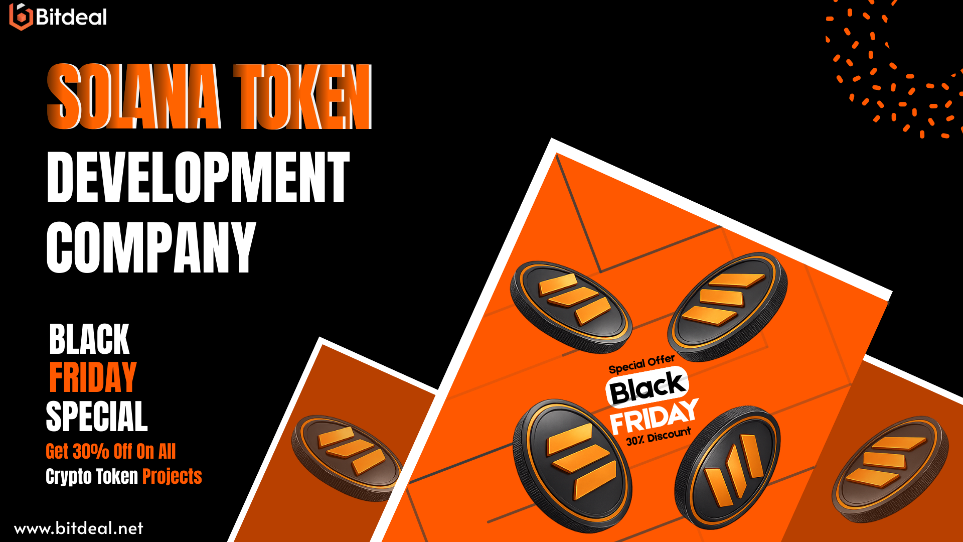 This Black Friday, Bitdeal’s Solana Token Development Company brings you an exclusive 30% OFF to turn your blockchain dreams into reality! Build highly secure, fast, and scalable tokens with cutting-edge Solana solutions. Benefit from customized tokenomics, smooth smart contract integration, and instant deployment. Don’t wait, this offer is time-limited! Start your crypto journey with the experts today.