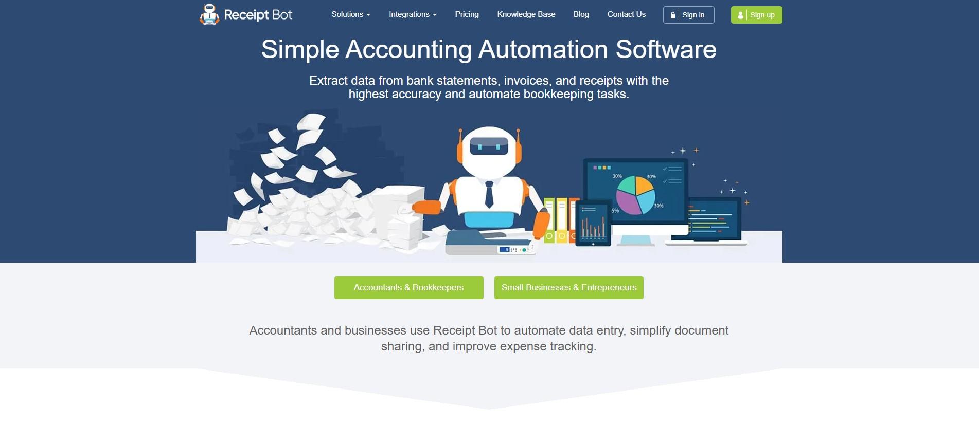 Receipt Bot is a cloud bookkeeping app that uses OCR to accurately extract data from invoices, receipts, bank, and card statements. You can download data from Excel or directly export to Xero or QuickBooks Online. Accurate data extraction saves you time and the hassle of manual data entry. It is efficient, scalable, and affordable for businesses, accountants, and bookkeepers.