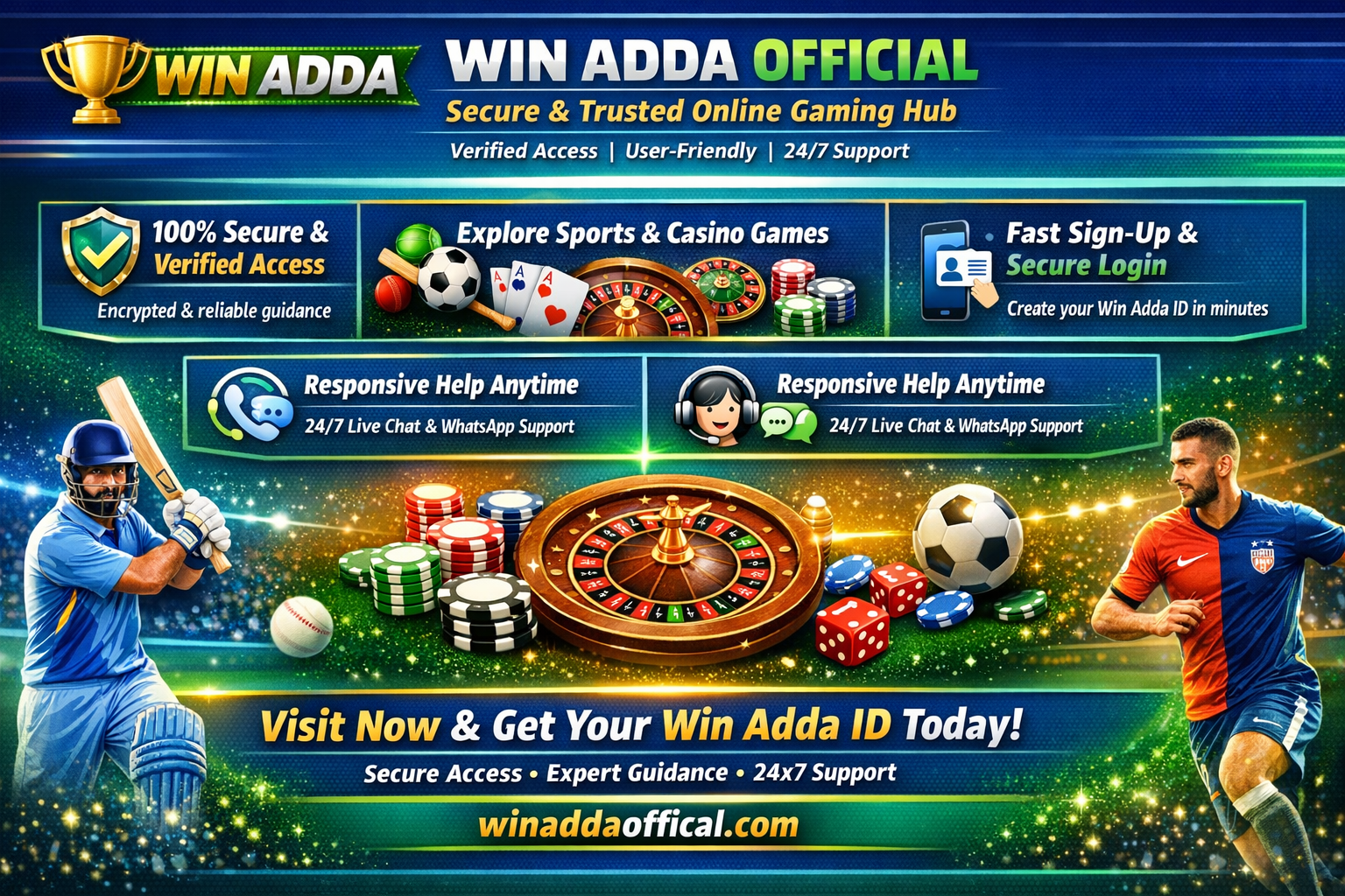 Win Adda is a modern online gaming platform where users can enjoy sports-based digital games easily. It offers a simple interface, quick account access, and mobile-friendly features for smooth navigation. Players can explore cricket, football, and other sports activities while experiencing a fast and convenient online gaming environment anytime. 🎮📱