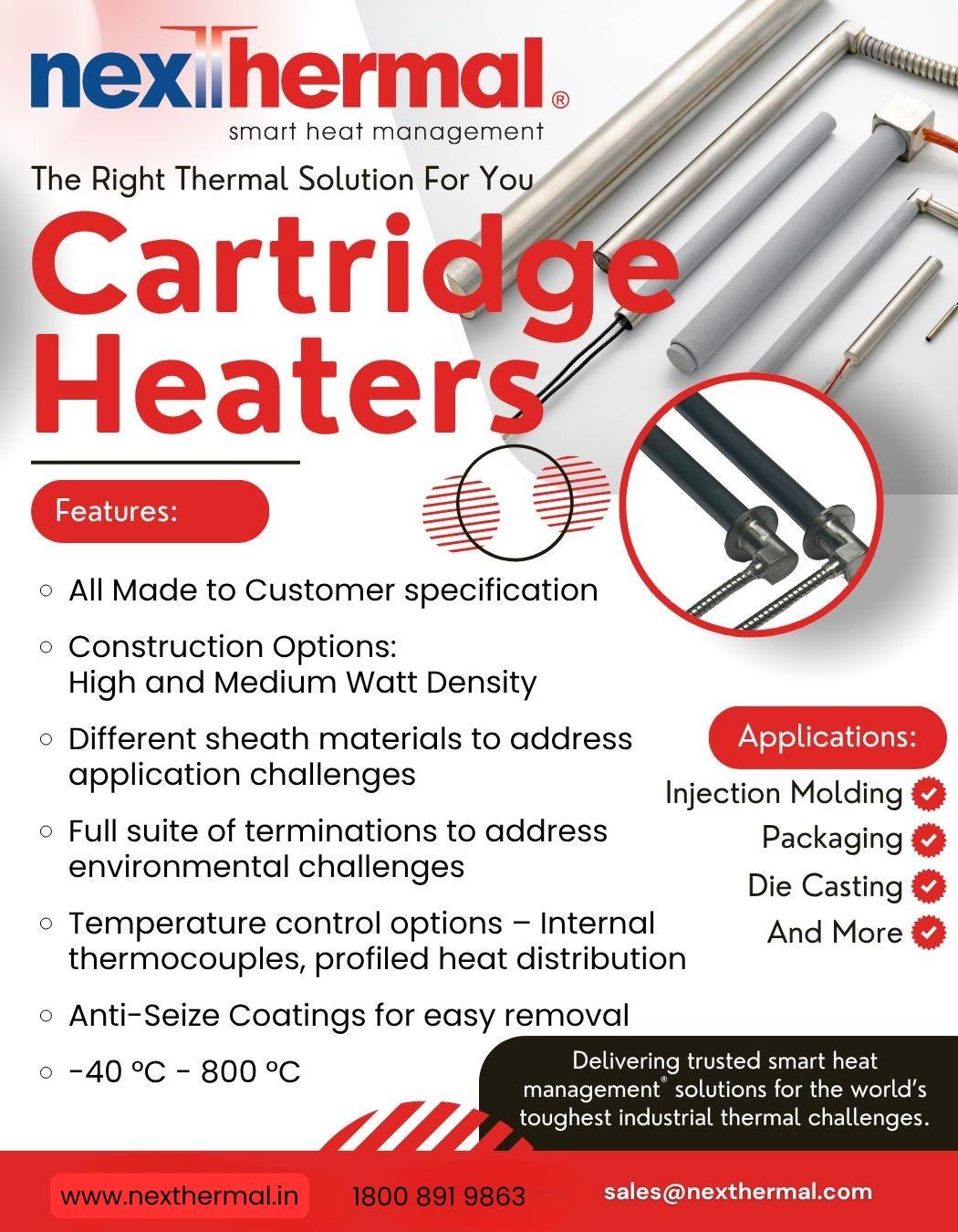 #ThermalSolutions #SmartHeat #CartridgeHeaters #Engineering #IndustrialSolutions #InjectionMolding #DieCasting #PackagingInnovation #HeatManagement #Nexthermal #Bangalore