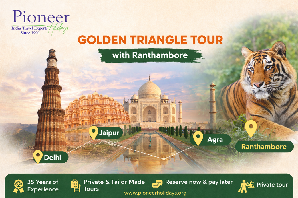 Crave culture and claws? Try a Golden triangle tour with ranthambore—Delhi's Bangla Sahib blessings, Agra's sunrise Taj poetry, Jaipur's City Palace opulence, plus Ranthambore's Bengal tiger ambushes. Camel cart rides, heritage spa unwinds, and kebab bonfires ignite senses across India's golden heart and wild fringes. Explore Package- https://www.pioneerholidays.org/tours/golden-triangle-tour-with-ranthambore-7-days