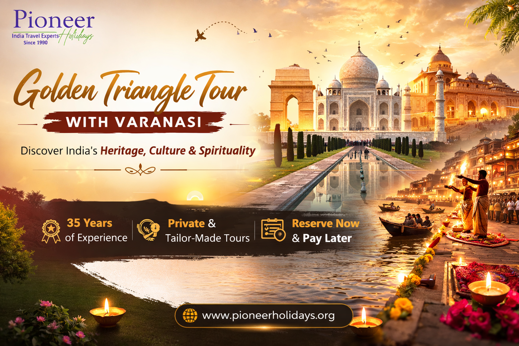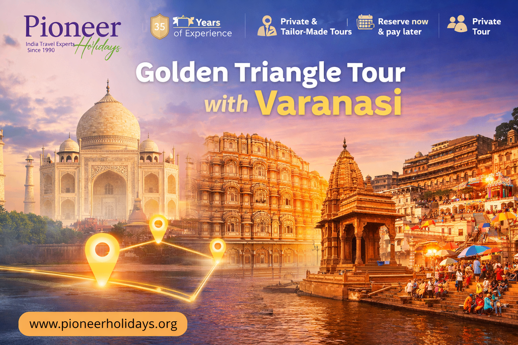 Navigate through the legendary Golden Triangle before heading to the spiritual capital for an unforgettable experience. This journey offers a rich tapestry of sights, from red sandstone forts to the flickering lamps of the evening aarti. A Golden triangle tour with varanasi is the quintessential Indian adventure for every history buff and spiritual seeker. Explore Package- https://www.pioneerholidays.org/tours/golden-triangle-tour-with-varanasi-8-days