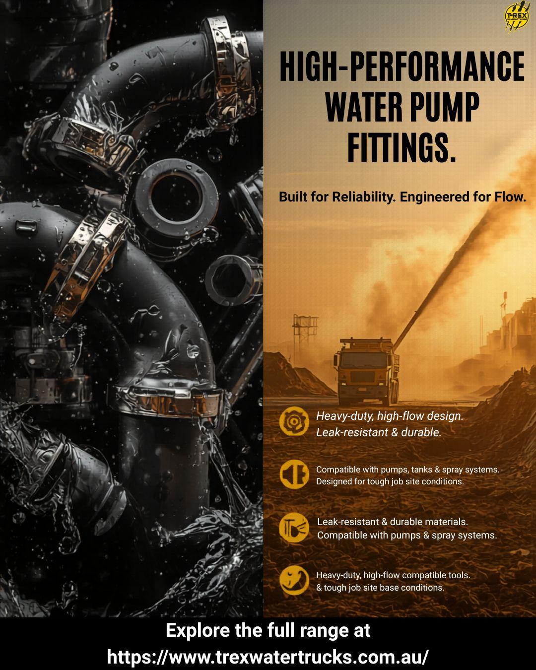 • Water pump fittings are essential components that connect, control, and optimize the flow of water within pumping systems, especially in demanding environments such as construction sites, mining operations, agriculture, and industrial applications. These fittings are designed to ensure secure and leak-proof connections between pipes, hoses, valves, and pumps, allowing water to move efficiently through the system without pressure loss or operational disruptions. Made from durable materials like stainless steel, aluminum, brass, or reinforced polymers, water pump fittings are built to withstand high pressure, corrosion, extreme temperatures, and heavy usage, making them ideal for tough working conditions.