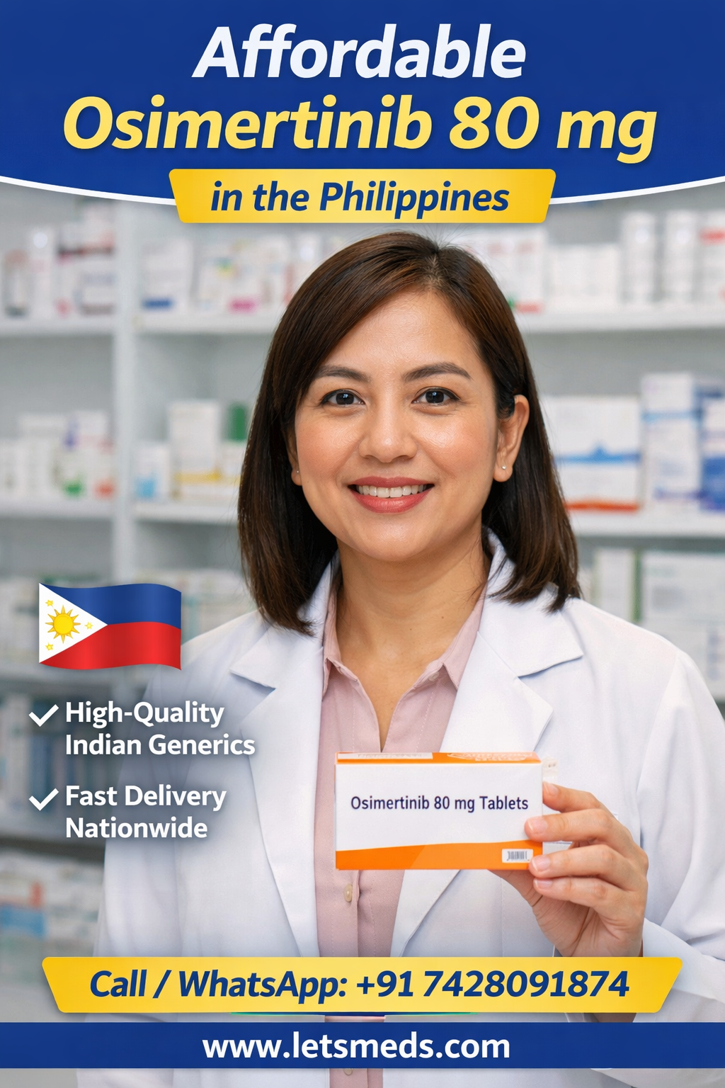 Many local pharmacies in the Philippines charge extremely high prices. In this video, I explain how LetsMeds Online Pharmacy helps patients get quality-assured generic Osimertinib at much lower costs, with fast delivery across Manila, Cebu, Davao, Quezon City, Baguio, Palawan, and more.