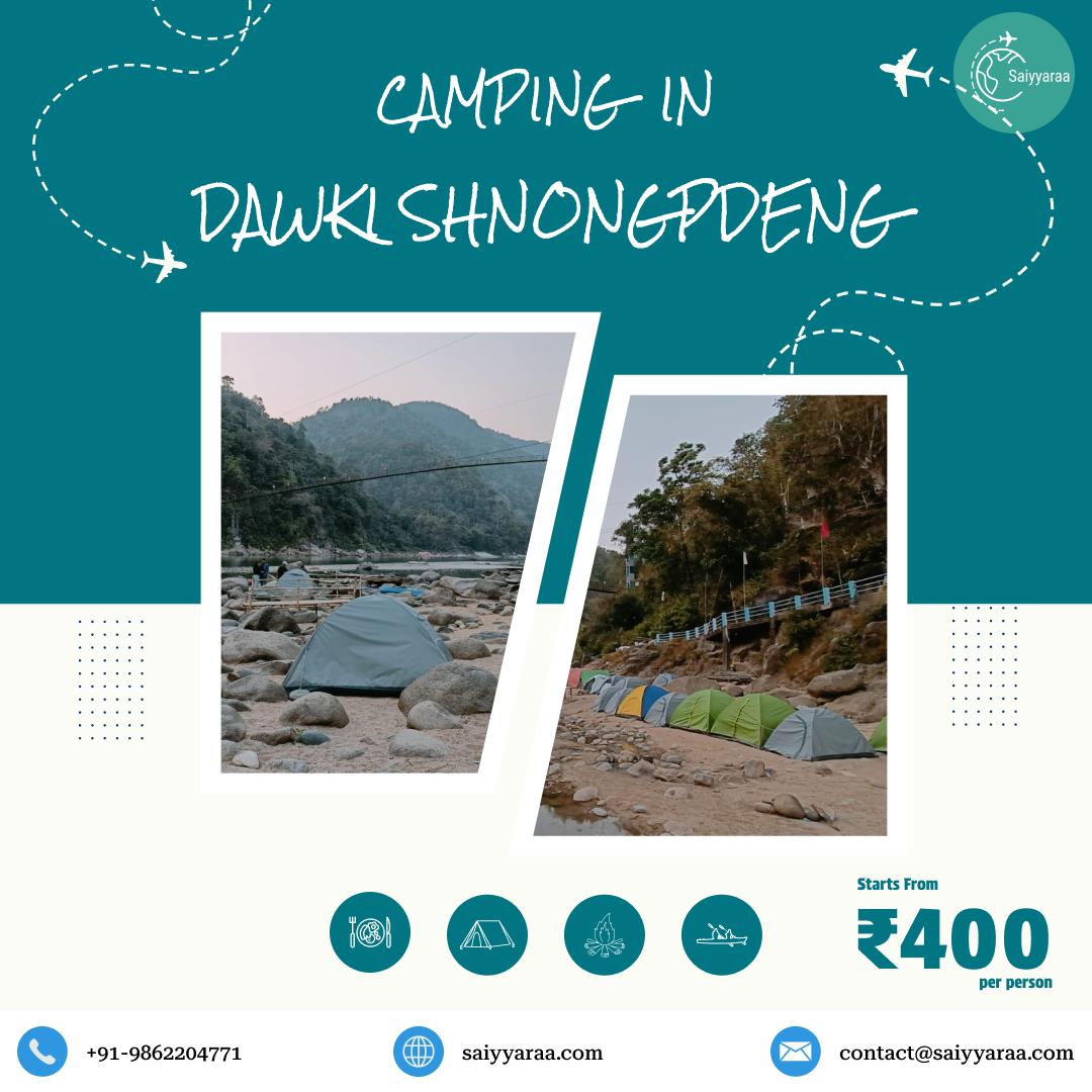 Camping in Dawki Shnongpdeng with Saiyyaraa Travels Spend a peaceful night beside the crystal-clear Umngot River and experience the calm beauty of Dawki like never before. Our Dawki Shnongpdeng camping offers a perfect mix of nature, comfort, and adventure in a safe riverside setting. Enjoy a relaxed evening by the bonfire, feel the cool river breeze, and choose from a range of adventure activities, including kayaking, cliff jumping, snorkeling, and scuba diving, tailored to your interests. 🏕️ Overnight Camping Experience • Tent stay starts from ₹400 per person • Check-in from the afternoon, check-out the next morning • Private camping options available on request • Pets and alcohol are not allowed Whether you are travelling with friends, family, or as a couple, camping in Dawki is a refreshing escape from your daily routine. Wake up to fresh air, flowing water, and a peaceful morning by the river. 📲 Book Your Dawki Camping Now 🌐 https://saiyyaraa.com/trip/camping-at-dawki-shnongpdeng/ 📞 Call/WhatsApp: +919862204771 [ Camping in Dawki, Dawki camping, Shnongpdeng camping, Umngot River camping, Camping in Meghalaya ] #DawkiCamping #CampingInDawki #ShnongpdengCamping #UmngotRiver #MeghalayaCamping #SaiyyaraaTravels #NortheastIndia #NatureStay #AdventureMeghalaya