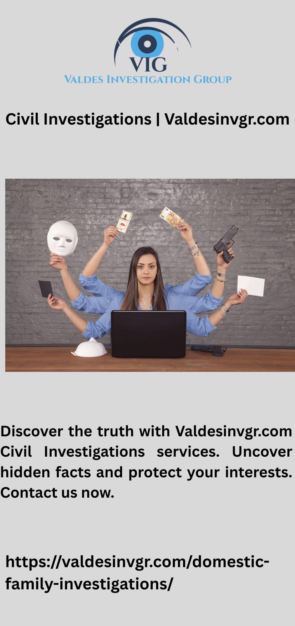 Discover the truth with Valdesinvgr.com Civil Investigations services. Uncover hidden facts and protect your interests. Contact us now.