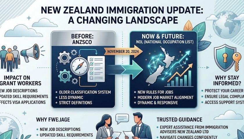 • New rules are transforming jobs in New Zealand! With ANZSCO out and NOL in from November 20, 2024, migrant workers must stay informed to protect their careers. Immigration Advisers New Zealand Ltd provides expert guidance—call today for trusted support.