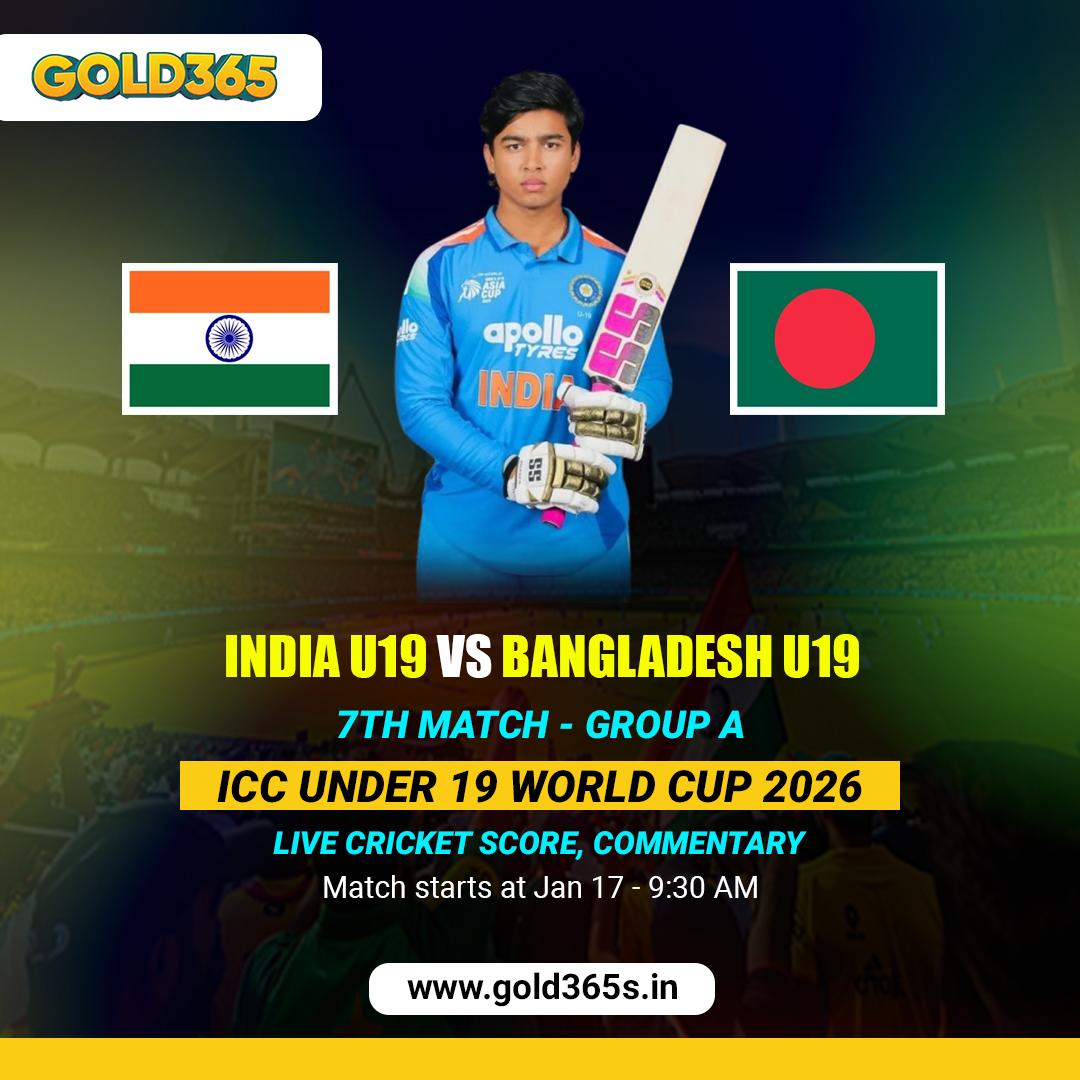 India U19 vs Bangladesh U19 clash from the ICC Under 19 World Cup 2026, Group A match. The image highlights young cricket stars in action with intense batting and bowling moments. Allpanelexch provides live cricket scores, ball-by-ball updates, team stats, and match insights in one place for fans who follow youth international cricket closely.