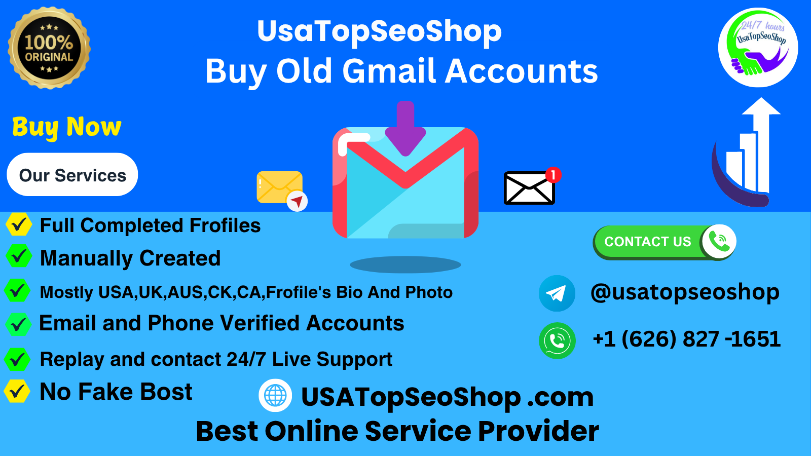 Buy Aus USA, UK, EU Aged Gmail Accounts Gmail the popular email service provided by Google, has gained millions of users worldwide. We provide us the best quality PVA Gmail account at an reasonable price ➤Details of Our Gmail Accounts ➤ PVA, bulk, fresh, and aged Gmail accounts ➤ Manually created High-Quality Old Gmail Accounts ➤ USA, UK, CA, and AU Gmail accounts with English names ➤ 100% satisfaction guaranteed ➤ Stable and verified ➤ Recovery email attached ➤ Phone Verified Accounts ➤ 24-7 to active customer care service If you want to more information just contact now here 24 Hours Reply/Contact Email: usatopseoshop@gmail.com Telegram: @usatopseoshop Skype: USTop SeoShop WhatsApp: +1 (626) 827 -1651