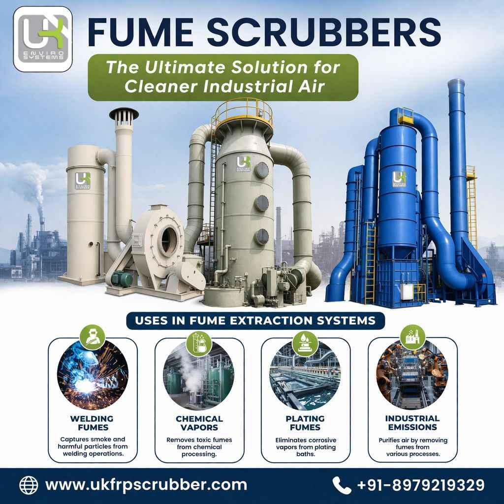 Leading Fume Scrubber Manufacturers understand that effective emission control requires precise engineering matched to your exhaust chemistry. UK Enviro Systems analyzes gas composition, temperature, and particulate loading before crafting your solution. Our tailored approach ensures maximum removal efficiency, minimal energy consumption, and cost-effective compliance for facilities worldwide. https://ukfrpscrubber.com/fume-scrubbers/ #FumeScrubbers, #FumeScrubberManufacturers, #FumeExtractionSystems, #Ghaziabad