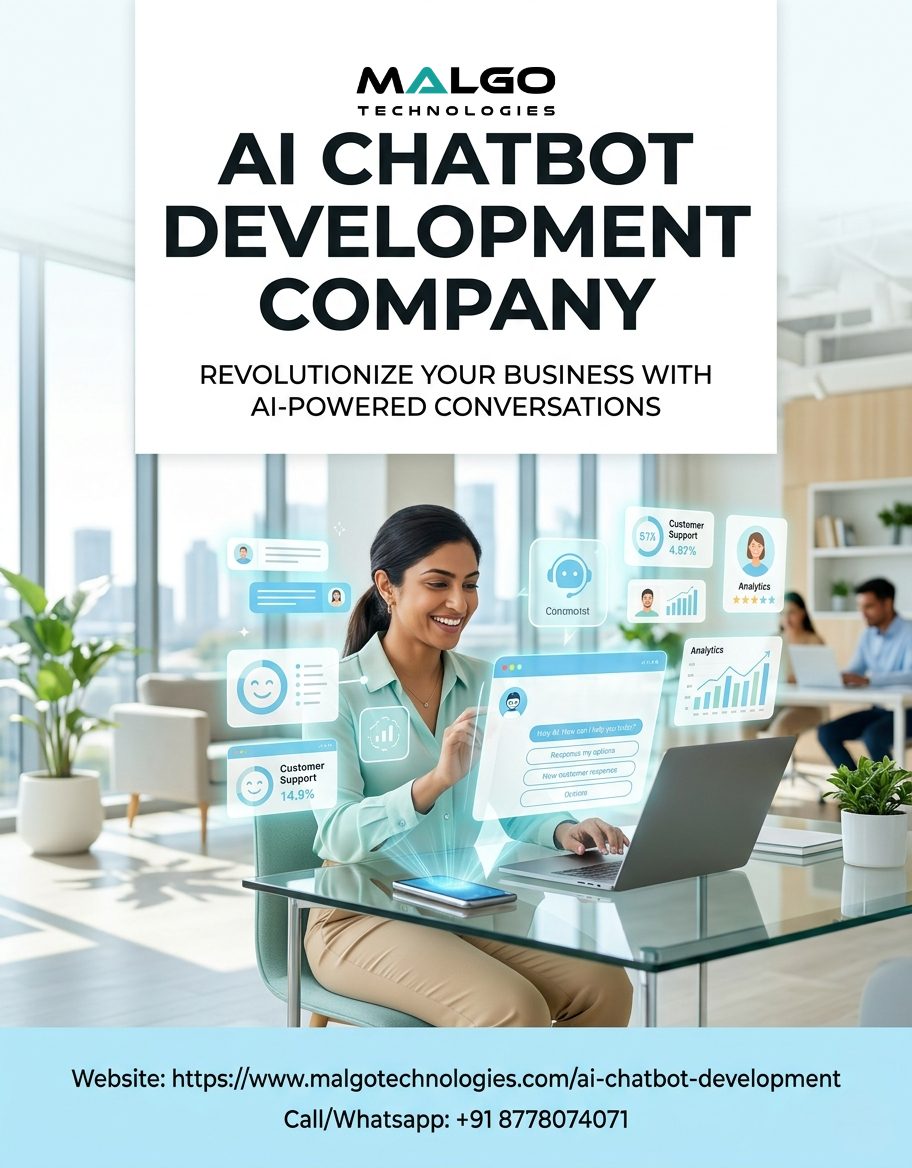 AI Chatbot Development Services for Rapid Growth Malgo offers AI chatbot development to help companies streamline support, increase engagement, and automate workflows. Their solutions provide smart, efficient, and dependable chatbots that adapt to business needs and scale with growth. 🔉For Quick Consultation, 📱 https://api.whatsapp.com/send?phone=918778074071 📧 E-Mail: info@malgotechnologies.com 💬 Telegram: https://t.me/malgotechnologies #AIChatbot #ChatbotDevelopment #ArtificialIntelligence #MachineLearning #AI #Automation #SmartBots
