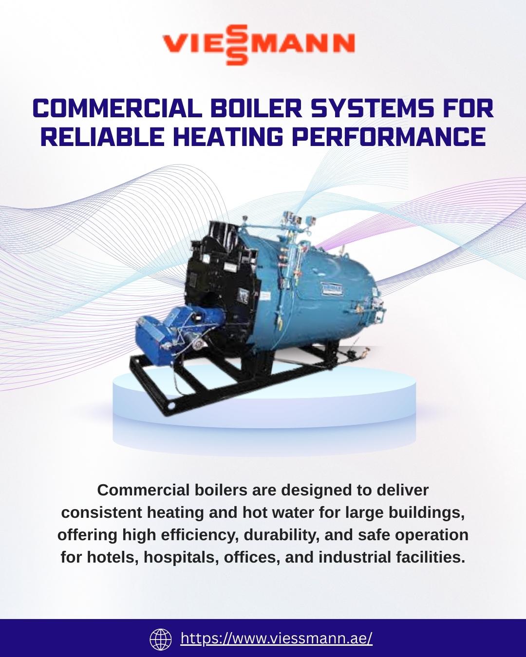 Advanced Commercial Boiler Systems for Every Industry Upgrade your facility with a high-performance commercial boiler engineered for maximum efficiency, durability, and consistent heat output. Our systems are ideal for hotels, hospitals, factories, and large commercial spaces. Designed to reduce energy costs and enhance reliability, each commercial boiler offers smart controls, low maintenance, and long-term performance—making it the perfect heating solution for modern businesses. For more info : Website : https://www.viessmann.ae/ Contact Us : +971 (4) 372 42 40 Address: Dubai Silicon Oasis Building, E-Wing Office №605 Dubai, United Arab Emirates Linkedln : https://www.linkedin.com/company/viessmannclimatesolutions Youtube : https://www.youtube.com/@ViessmannClimateSolutionsMEA0 Kommentare 0 Geteilt 345 Ansichten 0 Bewertungen -